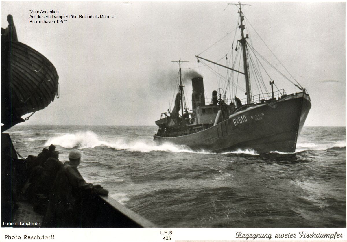 Fischdampfer Länge 48,32 m 27.05.1956 – Kollision in der Elbmündigung bei dichtem Nebel mit dem Fischdampfer “Schleswig-Holstein” Ausführliche Informationen bei Hans-Georg Rammelt, Seiten 88-89 |
