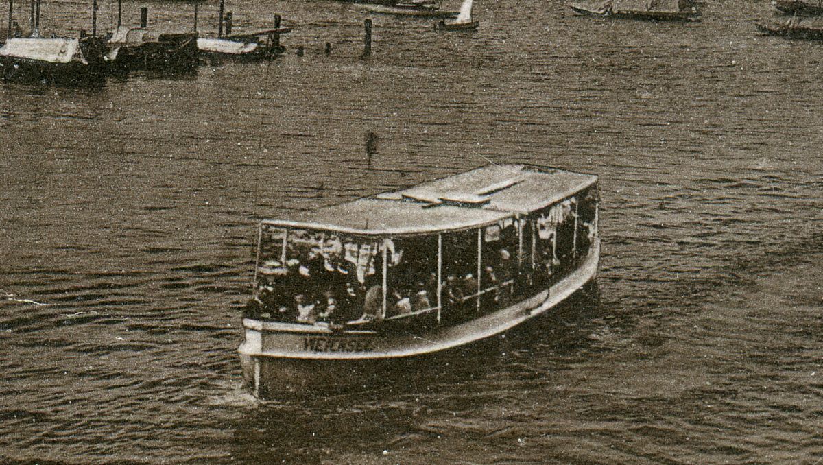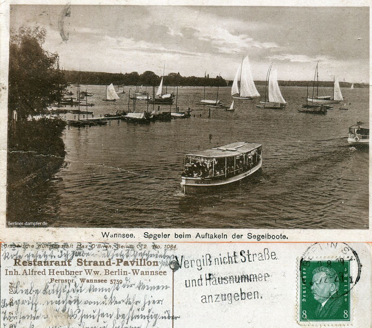 „Weichsel“, AK postlaisch gelaufen 02.08.1929. Aufgenommen von der Wannseebrücke.