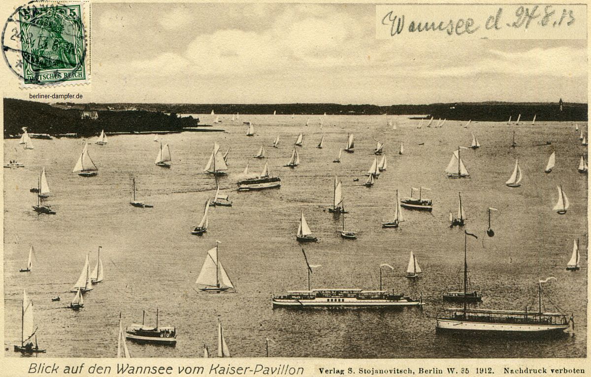 Wannseeblick, hinten rechts die Insel Schwanenwerder mit dem damaligen Wasserturm.