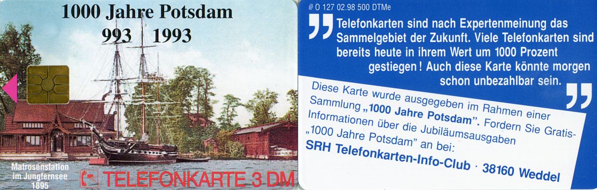 Heute – 2025 – muss man wohl fragen: „Was ist eine Telefonkarte?“ Über die Thematik „1000 Jahre Potsdam 993 – 1993“ gab es wohl einen umfangreichen Motivsatz an Karten.