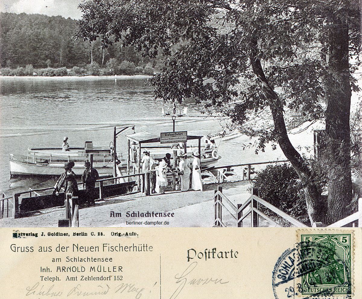 In der Zeit von vor 1900 bis zum 2. Weltkrieg, gab es auf dem Schlachtensee im Grunewald im einen Fähr-Rund-Verkehr mit vermutlich zwei Motorbooten.