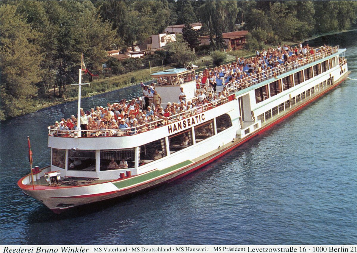 Am 30. Juni 1971 taufte die Tochter des Reeders einen Neubau auf den Namen “Hanseatic”. Die Wahl dieses Namens entsprach einer Tradition der Reederei, ihre Schiffe nach bekannten Ozeanriesen und “Musikdampfern” zu benennen. 1981 ist der Doppelschrauber in Oberwinter noch um 10 m verlängert worden und seitdem in der Größenordnung dem Motorschiff “Havelstern” vergleichbar. Die “Hanseatic” erhielt bei ihrem Umbau als erstes Berliner Fahrgastschiff ein Bugstrahlruder, das ihre Manövrierfähigkeit beträchtlich erhöht.