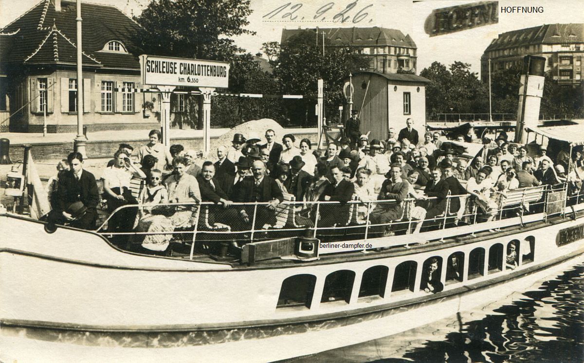 „HOFFNUNG“ auf einer Fahrt „nach Nedlitz“ am 12.09.1926 in der Schleuse Charlottenburg: |